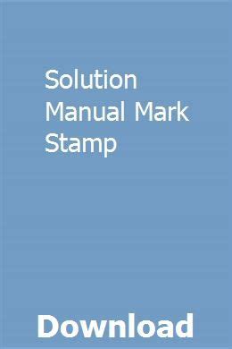 Read Online solution manual mark stamp Doc online is a convenient and frugal way to read solution manual mark stamp you love right from the comfort of your own home. Yes, there sites where you can get Doc "for free" but the ones listed below are clean from viruses and completely legal to use.